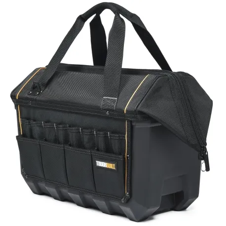 Bolsa de ferramentas resistente: protege suas ferramentas com o forro rígido de plástico rígido e estrutura resistente. Tem pés de borracha resistentes e bolsos externos revestidos de plástico para proteger o equipamento que você mais usa.