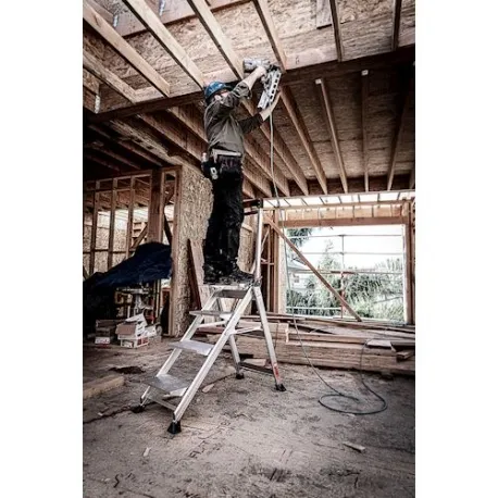 Mantenha suas ferramentas à mão. A bandeja de ferramentas integrada no corrimão permite que você coloque seu telefone, martelo, furadeira ou outros materiais na bandeja para facilitar o acesso durante o trabalho.