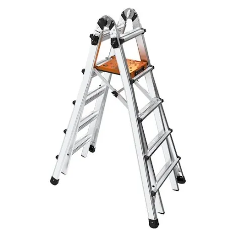 Projetada para deslizar para fora do caminho durante a escalada, esta plataforma portátil pode ser usada nas posições de estrutura em A e escada extensível.