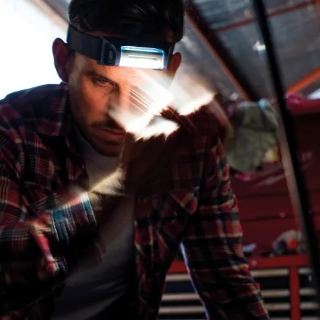 Ao contrário de outros faróis que fornecem um feixe de luz, o I-VIEW foi projetado para fornecer luz de trabalho ideal, iluminando toda a sua área de trabalho. Com função de dimmer contínuo, a saída de luz pode ser ajustada de acordo com a tarefa de trabalho na faixa de 10% a 100% até 400 lúmens. Quando definido no modo de sensor, o I-VIEW pode ser ligado/desligado apenas acenando com a mão na frente da lâmpada - mesmo usando luvas grossas.