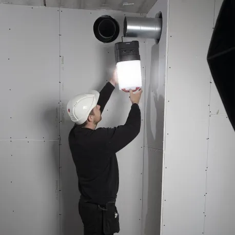 AREA 10 CONNECT fornece uma luz difusa e uniforme de até 10.000 lúmens, ideal para o usuário profissional que requer iluminação potente e eficiente de toda a área de trabalho realizando qualquer tipo de reparo, pintura ou construção.