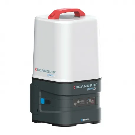 Devido ao design compacto e leve, o AREA 10 CONNECT é portátil e fácil de transportar. Também é fornecido com um gancho para posicionamento flexível e pode ser montado diretamente no TRIPÉ SCANGRIP. Poeira e à prova d'água, IP65 e fornecido com um banco de energia integrado com saída USB para carregar dispositivos móveis.