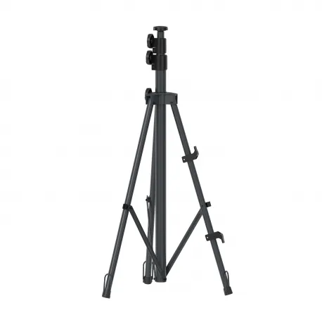 O tripé é feito de aço revestido a pó durável e uma tampa de montagem de aço soldado (rosca de 10 mm) garante a durabilidade do tripé universal. Quando não está em uso, o tripé é compacto com um peso de 6 kg.