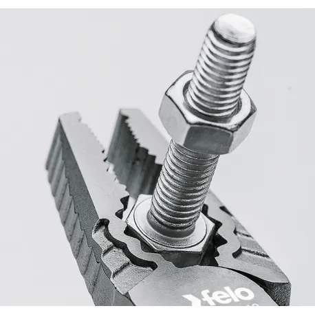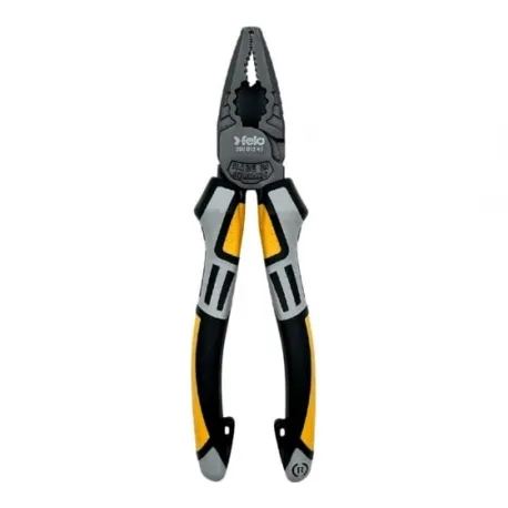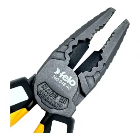 Alicate combinado modelo 590 com mandíbulas serrilhadas que proporcionam aderência e com ganchos embutidos na alça do alicate para engate de cordão de segurança. (Não está incluso o cordão de segurança) Possui os tamanhos: 165 mm| 180mm. As características do alicate se encontram no catálogo.