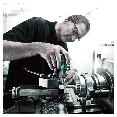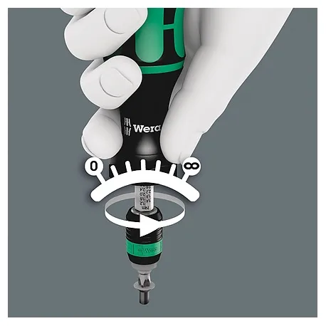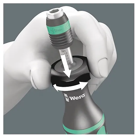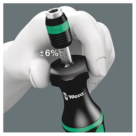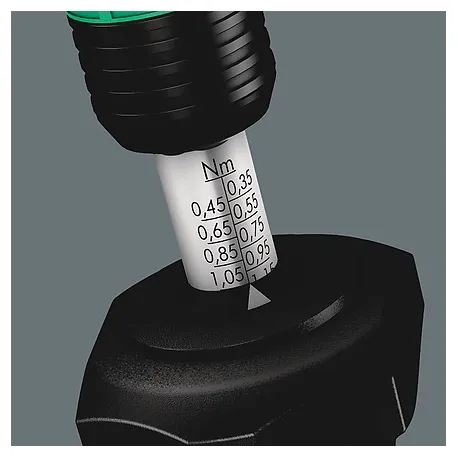 Wera chave de fenda de torque. Opção de ajuste de torque variável com a mais alta precisão. Ajuste simples do valor de torque necessário sem ferramentas especiais. Valor da escala de fácil leitura; sinal de clique audível. Tecnologia de liberação rápida Rapidaptor para troca rápida de bits. Torque ilimitado para soltar parafusos presos. Cabo Kraftform multicomponente com zonas duras e macias para altas velocidades de trabalho, ao mesmo tempo em que é fácil de manusear. Adequado para brocas com cabeça hexagonal de ¼" conforme DIN ISO 1173-C 6.3 e E 6.3 (ISO 1173). CABO 89MM.
