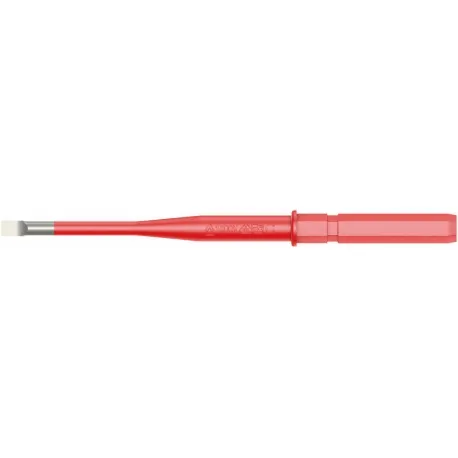 Lâmina de aço inoxidável VDE com diâmetro de lâmina reduzido com isolamento de proteção integrado - parafusos de baixa altitude e elementos de mola podem ser facilmente alcançados e operados. Testadas individualmente em 10.000 V para um trabalho seguro na tensão aprovada de 1.000 V. As ferramentas de aço inoxidável da Wera são endurecidas com gelo a vácuo e, portanto, possuem as propriedades de dureza e resistência necessárias para conexões aparafusadas. O uso industrial é possível sem restrições.