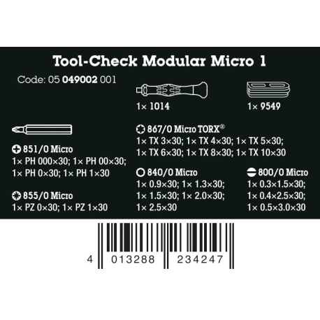 Tool-Check Modular Micro 1, 21 peçasFerramenta-Check Modular Micro 1O sistema modular Tool-CheckChave de fenda Kraftform Micro 1014Bits com acionamento hexagonal de 4 mm