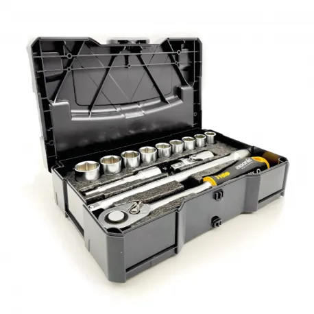 Conjunto catraca ERGONIC 1/2" modelo 056, 13 peças. Catraca/soquetes/extensões.