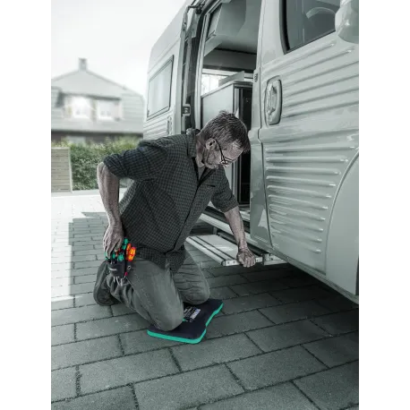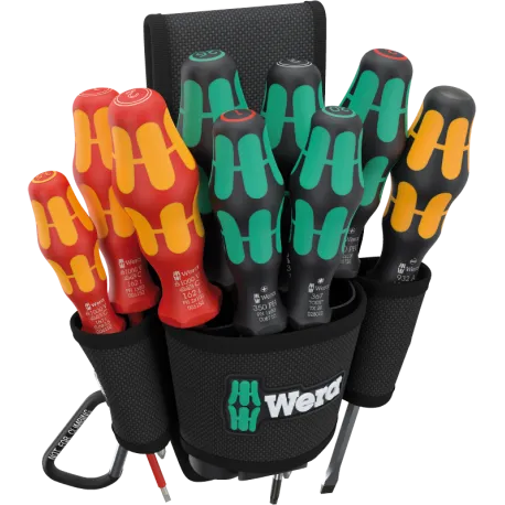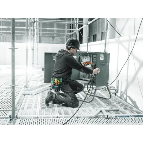 O conjunto de ferramentas para cinto inclui uma bolsa com 5 zonas para inserção e acesso das ferramentas necessárias a qualquer momento. A bolsa possui uma construção robusta, feita de material resistente a rasgos e adequada para uso em condições adversas. As ferramentas incluídas podem ser complementadas ou trocadas individualmente. A bolsa pode ser usada na cintura, sendo ideal para uso móvel em diferentes locais. Os punhos Kraftform Plus proporcionam parafusamento ergonômico confortável, evitando bolhas e calos. As zonas rígidas dos punhos garantem velocidades de trabalho elevadas, enquanto as zonas macias garantem alta transferência de torque. Inclui algumas ferramentas com Lasertip: As pontas dos parafusos Lasertip da Wera são microscopicamente rugosas com feixes de laser. Essa superfície rugosa "morde" na cabeça do parafuso e o escorregamento involuntário é coisa do passado. O "Localizador de Ferramentas" Take it easy com codificação de cores por perfil e marcação de tamanho permite a identificação rápida e fácil da ferramenta necessária. Inclui um cinzelador com lâmina hexagonal para golpes, feito de material de ponta premium, que garante transmissão de energia sem perda mesmo em golpes de martelo.