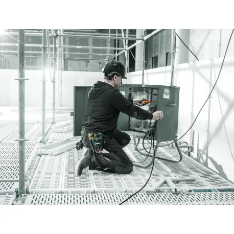 O conjunto de ferramentas para o cinto. A bolsa de ferramentas possui 5 zonas para inserção e acesso às ferramentas necessárias a qualquer momento. A bolsa possui uma construção robusta, feita de material resistente a rasgos e também é adequada para uso em condições adversas. As ferramentas incluídas podem ser complementadas ou trocadas individualmente. A bolsa pode ser usada nos quadris, ideal para uso móvel em diferentes locais. Cabo Kraftform Plus para parafusamento ergonômico confortável, evitando bolhas e calos. Zonas de cabo rígidas para alta velocidade de trabalho, enquanto as zonas de cabo macias garantem uma alta transferência de torque. Inclui algumas ferramentas com Lasertip: As pontas das chaves de fenda Wera Lasertip são microscopicamente rugosas com feixes de laser. Essa superfície áspera "morde" na cabeça do parafuso e o deslizamento acidental é coisa do passado. "Take it easy" localizador de ferramentas com codificação de cores por perfil e marcação de tamanho - para identificação rápida e fácil da ferramenta necessária. Incluindo um cinzelador com lâmina hexagonal de passagem de martelo feita de material de ponta premium que garante transmissão de energia sem perdas mesmo em golpes de martelo. Algumas das chaves de fenda são equipadas com alças esféricas, o que permite transferir muita pressão durante o parafusamento. A palma envolve o cabo de cima, o que permite altos torques e altas forças axiais.