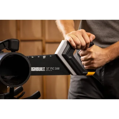 A serra de PVC ToughBuilt de 18 pol. foi projetada para ser a serra mais eficiente e otimizada para cortar substratos plásticos. Apresentando lâmina de aço de alto carbono para maior longevidade e cortes mais retos, a serra corta com facilidade vários materiais plásticos. Uma alça moldada injetada proporciona máximo conforto e controle para o usuário. A serra possui um alojamento de lâmina de metal para otimizar a rigidez e o controle para o usuário, bem como armazenamento integrado de lápis de carpinteiro no cabo.