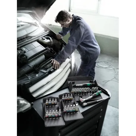 Conjunto de soquetes para bits, soquete hexagonal, com função de retenção para aparafusamento particularmente confortável com risco reduzido de perda do parafuso ao abordar a peça de trabalho. 8740 C HF Zyklop soquete de bit com drive de 1/2" com função de retenção
