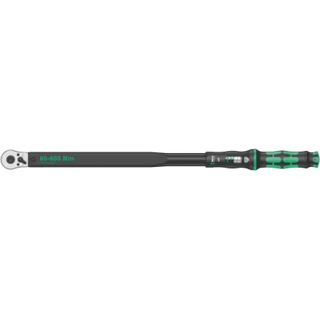 Chave Click-Torque no inconfundível e robusto design Wera com alta precisão conforme DIN EN ISO 6789-1: 2017-07. Fácil configuração e economia do valor padrão. Os cliques audíveis e táteis ao atingir os valores da escala também facilitam o ajuste seguro do valor de torque desejado. O mecanismo de liberação robusto garante um sinal de liberação claramente audível e tátil quando o torque definido é atingido. Para uso à direita (controle de torque no sentido horário) e com mecanismo de catraca reversível de 45 dentes.