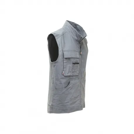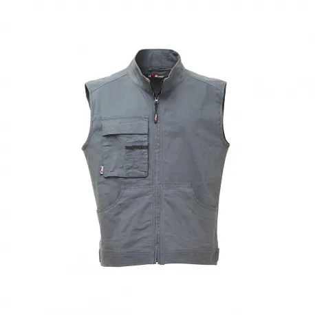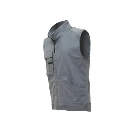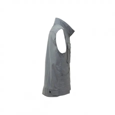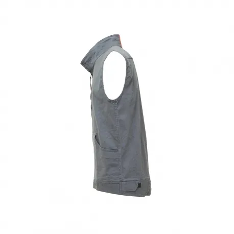 Colete de trabalho em lona de algodão stretch. 2 grandes bolsos frontais, um bolso multifunções no peito, ajuste de velcro na parte inferior. Fita vermelha / inserções reflexivas na parte de trás da gola. Fecho eclair. Embalado em um saco de cordão de nylon confortável. Combina com calças Ocean e bermudas Summer.