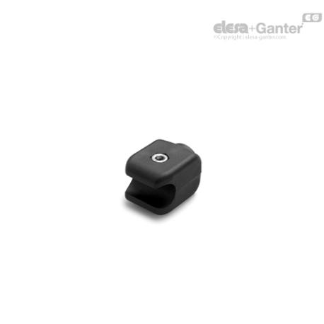 O alojamento interno é dimensionado para contato firme com a guia, enquanto o elemento metálico de aperto, integrado por parafuso de fixação, assegura travamento confiável e repetitivo. A geometria compacta facilita a instalação em espaços reduzidos e permite montagem rápida sem necessidade de componentes adicionais.