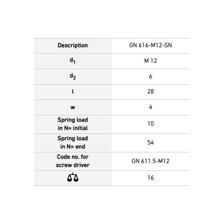 O indexador de mola GN 616-M12-SN integralmente fabricado em aço inoxidável, composto por corpo roscado M12, pino móvel em inox e mola interna também em aço inox. Possui carga de mola padrão, garantindo deslocamento axial controlado e retorno automático do pino. A rosca usinada com tolerâncias precisas assegura montagem estável e repetibilidade dimensional, mantendo desempenho confiável mesmo sob ciclos repetidos e em ambientes corrosivos.