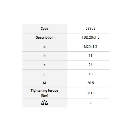 O plugue de drenagem TSD.20×1.5 é fabricado em tecnopolímero de alta resistência, adequado para contato com óleos e fluidos industriais, suportando temperaturas de trabalho de até 100 °C. Seu corpo compacto e geometria funcional garantem vedação confiável e montagem segura em conexões roscadas. O modelo possui rosca macho métrica M20×1,5, usinada com precisão para assegurar acoplamento firme e estanqueidade eficiente. A vedação integrada contribui para evitar vazamentos e manter a integridade do sistema, oferecendo desempenho consistente e acabamento técnico adequado a aplicações industriais padronizadas.